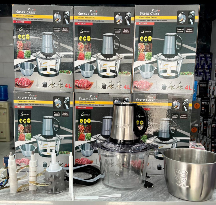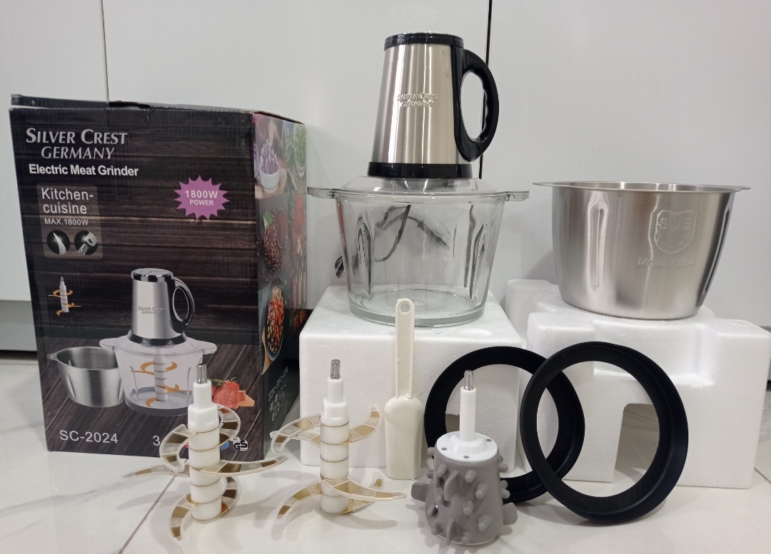خردکن غذاساز دو کاسه ۴+۴ لیتر سیلورکرست- قدرت 4000w وات- ۶ تیغه طلایی + 4تیغه زاپاس حک شده آلمان مدل MN-2021