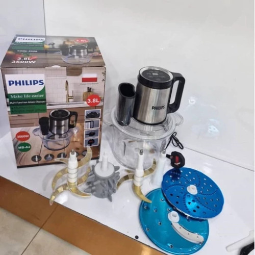 خردکن و سالاد ساز 3.8 لیتر دو کاسه فیلیپس موتور دیجیتال-قدرت 3500w وات-تیغه تیتانیوم طلایی-مدل Mb-A2