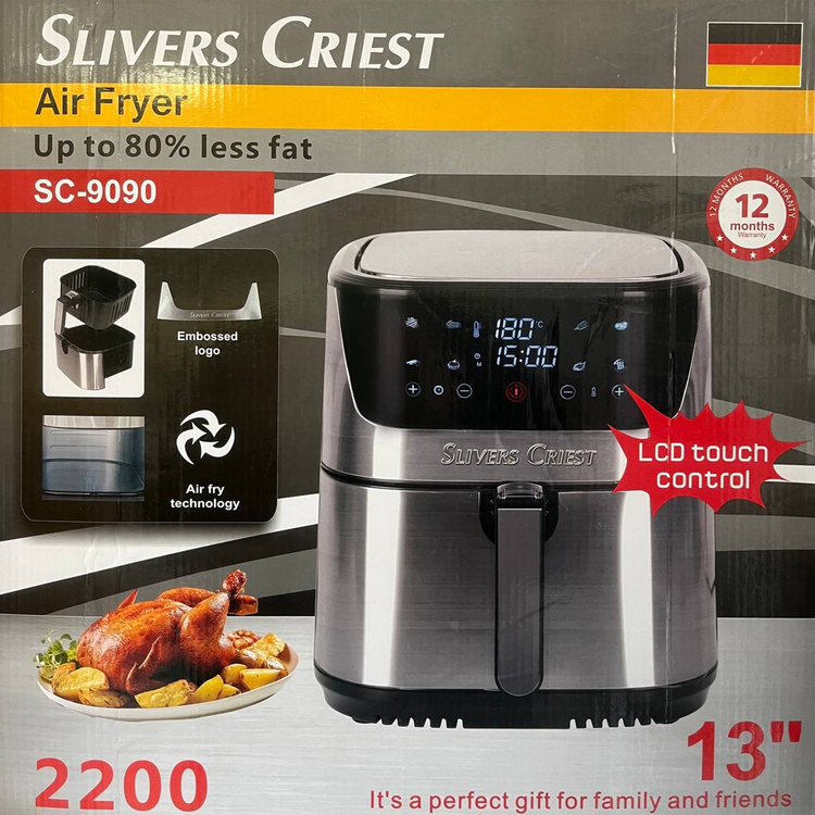 سرخکن سیلور کرست SCS-6090 با طراحی زیبا و ظرفیت 12 لیتری مناسب انواع پخت و پز رژیمی و بدون روغن است.این مدل دارای صفحه دیجیتالی می باشد که اطلاعات مختلف چرخه پخت و پز و سرخ کردن مثل دمای پخت و زمان باقی مانده را نشان می دهد. دارای 8 برنامه پخت و برنامه گرم نگهداشتن غذا است جنس بدنه از استیل و پلاستیک مخصوص است. ظرفیت بالا 13 لیتر و قدرت بالا 2200 وات است. این سرخ کن با ظرفیت بالا، مناسب برای انواع غذاهای لذیذ مانند: مرغ کباب، ماهی کباب، گریل، کیک، بال مرغ سوخاری، نان و کلوچه پخته شده است . سیستم گردش هوای گرم غذای آماده شده را به طور یکنواخت می پزد .دستگاه ما به راحتی تمیز می شود، می توانیم توری کف را در چند لحظه زیر آب جاری بشوییم. علاوه بر این، دستگاه ما دارای یک مخزن به راحتی قابل جابجایی است که چربی از محصولات سرخ شده در زیر آن جریان می یابد. پس از اتمام کار کافیست آن را بیرون بکشید و همچنین زیر آب جاری بشویید. فرقی نمی کند سبزیجات سرخ کنید، سیب زمینی سرخ کرده یا گوشت سرخ کنید، این دستگاه همه کاره پخت همه چیز را به روشی سالم تر ممکن می کند .شکل کانتور سرخ کن و گردش هوای هوا باعث می شود غذاها به طور یکنواخت سرخ شوند، این سری جدید مدل ۶۰۹۰ میباشد