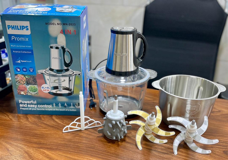 خردکن دوقلو فیلیپس- ظرفیت 4+4 لیتری-6+6 تیغه تیتانیوم طلایی همراه با سیر پوست کن و همزن-2کاره- قدرت3000w وات- مدل 2024
