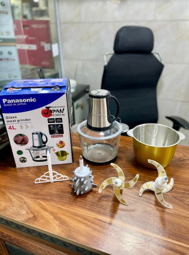 خردکن دو کاسه۴+۴ لیتر پاناسونیک- ۶+۴ تیغه تیتانیوم طلایی همراه کاردک و سیر پوست کن و همزن- 3 کاره- 3800w وات