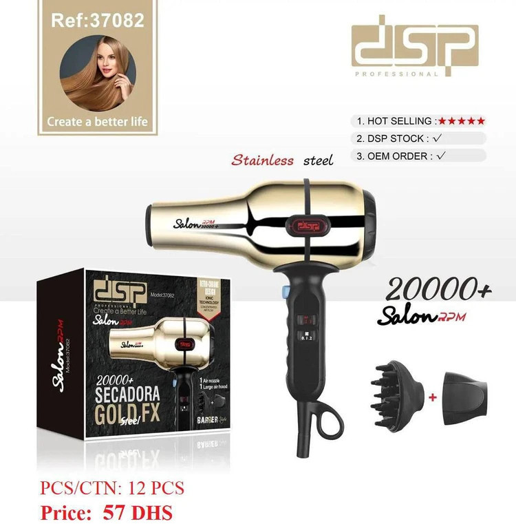 سشوار دی اس پی مدل ۳۸۰۷۲ – قدرت بالای موتور برای خشککردن سریع، تنظیمات حرفهای دما و باد مناسب هر نوع مو، طراحی ارگونومیک سبک و خوشدست برای راحتی استفاده، همراه با تکنولوژی محافظت از موها برای جلوگیری از آسیب و حفظ نرمی و درخشندگی طبیعی!