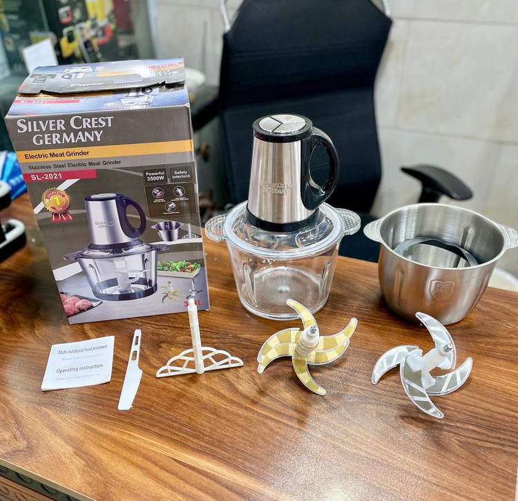 خردکن دو کاسه ای سیلور کرست اصل آلمان-6تیغه تیتانیوم طلایی + 4 تیغه زاپاس همراه با سیر پوست کن و همزن- 3 کاره-قدرت دستگاه 3000W وات