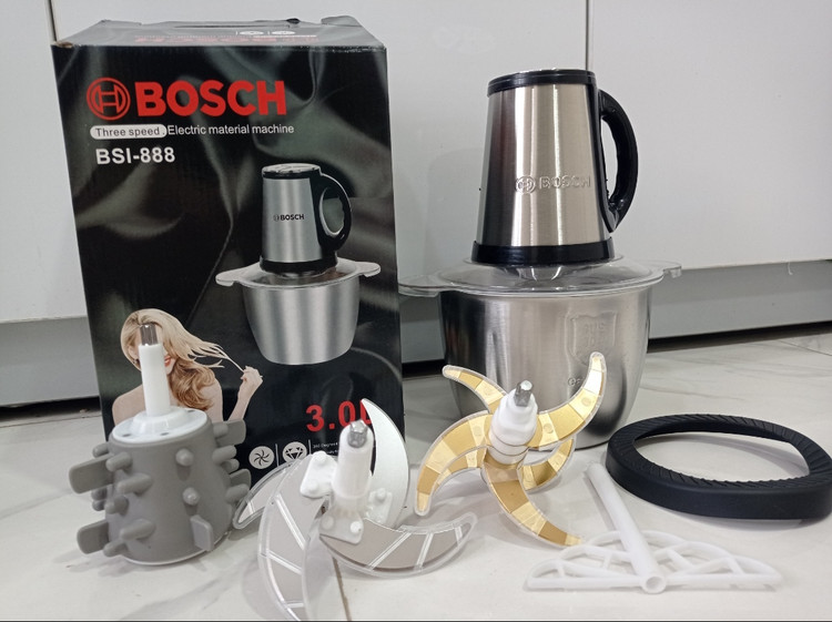 خردکن غذاساز بوش. موتور حک شده - ظرفیت 3 لیتری - 6 تیغه تیتانیوم طلایی همراه با 4 تیغه زاپاس . به همراه همزن و سیرکن -مدل BSI888